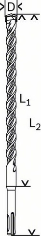 S4L SDS-plus ударне свердло 24x400x450 мм 1618596237 Опис: – activeteq Ø ≤ 10 мм Активний центруючий наконечник гарантує активну обробку бетону – Міцний твердий сплав Довгий термін служби / стійкість – Індикатор зносу – 4-спіральна конструкція Турбо-дизайн Запатентована 4-спіральна конструкція забезпечує ефективне розвантаження – 2 кромки, паяні та загартовані Технологія пайки та зміцнення AWB, оптимізована для діаметрів, спрямована на підвищення міцності свердла та водночас на зниження його вібрацій під час свердління – Зубчасті спечені карбіди Вводить пил безпосередньо в спіраль, щоб запобігти засміченню дна просвердленого отвору.Видимий індикатор зносу вказує на те, що діаметр отвору все ще знаходиться в межах зазначеного діапазону допуску для правильного встановлення заглушки або анкера.Застосування: Для цегляної кладки, бетону та залізобетону. Для всіх перфораторів з рукояткою SDS-plus Технічні дані: Діаметр D: 24 мм Робоча довжина L1: 400 мм Загальна довжина L2: 450 мм Хвостовик: SDS-plus Кількість: 1 шт.