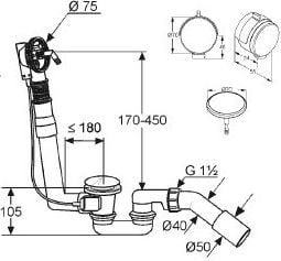 Сифон Kludi Комплект зливно-переливний з автоматичною пробкою, хром, з наповненням водою (2120005N00)