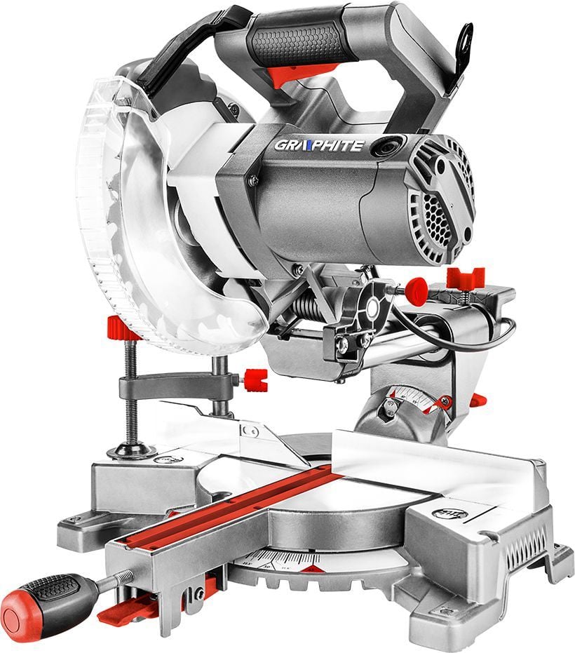 Торцювальна пила Graphite 59G800 Торцювальна пила GRAPHITE з функцією подачі головки, оснащена двигуном потужністю 1400 Вт, призначена для точного різання великих шматків дерева та матеріалів на основі деревини. Пристрій має можливість регулювання опор оброблюваного матеріалу, а також можливість швидкої установки популярних кутів різу. Діапазон кутового і косого різання від 0° до 45°. Пила з компактною і стійкою конструкцією, виготовлена з алюмінієвого сплаву, має металевий фіксатор шпинделя. Для комфорту і безпеки основна ручка пристрою покрита нековзким матеріалом. Точне позиціонування матеріалу для різання полегшить лазерна указка, вбудована в пристрій. Можна самостійно замінити вугільні щітки зовні.У комплект пилки входять: мішок для збору пилу, вертикальний затиск для утримання оброблюваного матеріалу та монтажний ключ. Відповідність європейським стандартам забезпечується сертифікатом CE.
