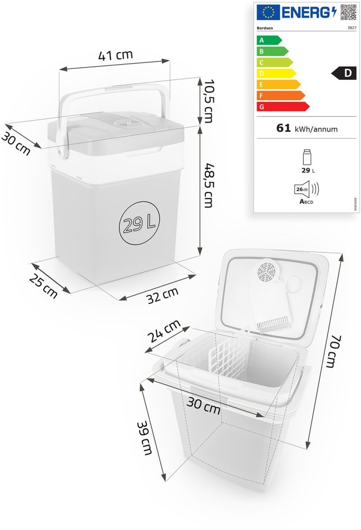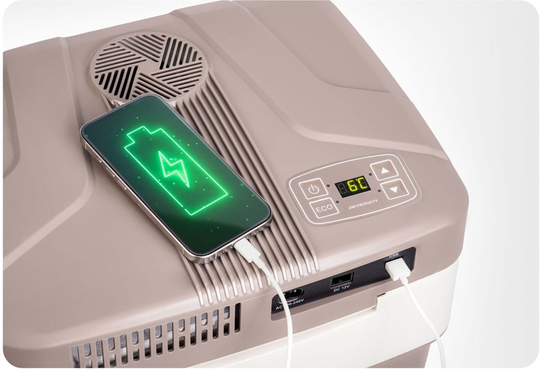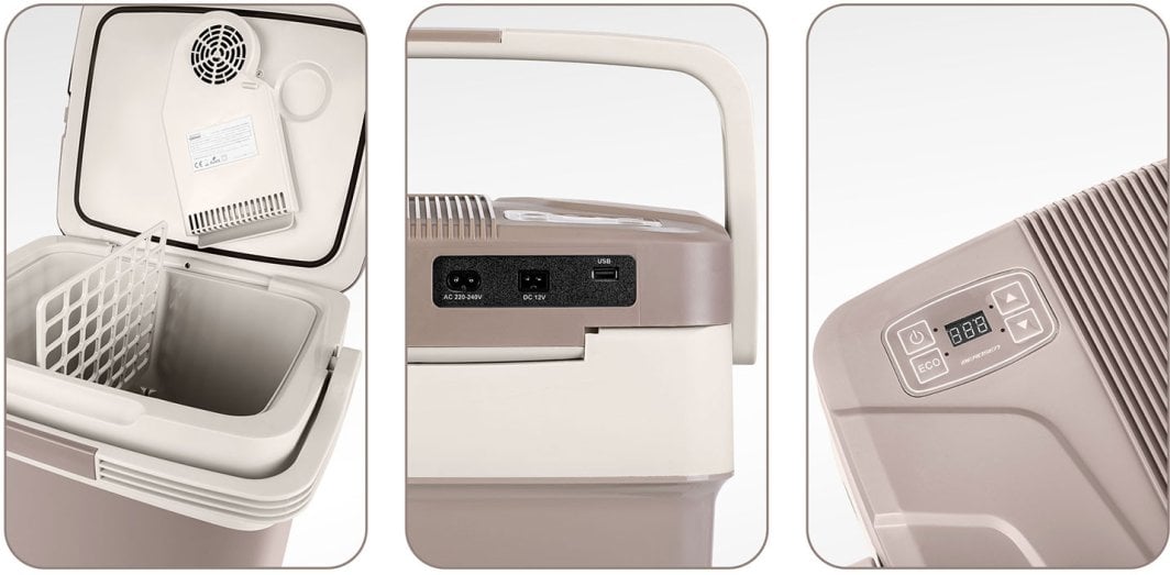 Легкий туристичний холодильник з функцією ECO Berdsen: 3827 ✅ Подвійні стінки корпусу забезпечують чудову теплоізоляцію та підтримують температуру в холодильній камері.✅ Об’єм 29 літрів.✅ Електронний дисплей.✅ Можливість налаштування температури.✅ Два режими роботи – ECO та Normal.✅ Функція охолодження – охолоджує напої на 18°C нижче температури навколишнього середовища.Сонце не дає – а можна!Холодні напої, свіжі фрукти та відпочинок без стресу – беріть із собою холодильник, куди захочете.2 блоки живлення в комплекті!✅ USB вхід, щоб можна було зарядити телефон!✅ Автомобільна розетка 12В – можна користуватися холодильником під час подорожі на автомобілі.✅ Розетка 230 В для зарядки холодильника вдома.Переваги володіння охолоджувачем Berdsen Функції цього охолоджувача принесуть вам великі переваги.Холодильник може мати багато функцій: функція кошика для пікніка – покладіть продукти в холодильник і встановіть відповідну температуру на дисплеї.функція утеплювача – це ідеальний продукт для пляжу.Тепер ви можете забути щороку купувати новий ізоляційний мішок, просто візьміть із собою кулер.Продукти охолонуть, і ви зможете насолоджуватися ними довгі роки.Холодильник відмінно підійде як для короткої поїздки на море, так і для тривалої подорожі – його об’єм становить 29 літрів.Завдяки такій місткості ви зможете помістити все необхідне для себе та своїх близьких.ПЛАНУЄТЕ ДОВШИЙ ВІДПОЧИНОК?ХОЛОДИЛЬНИК BERDSEN БУДЕ ПРАЦЮВАТИ ІДЕАЛЬНО. Електроживлення та управління холодильником – просто і зручно.Холодильник живиться від розетки 220-240 В ~50/60 Гц або від розетки автомобільного прикурювача 12 В – відповідні шнури живлення входять в комплект.Після запуску двигуна холодильник увімкнеться автоматично, але вам може знадобитися натиснути кнопку ON/OFF, щоб перезапустити його.Режим Eco активується при досягненні заданої температури, зменшуючи споживання електроенергії.Коли температура підвищиться, пристрій автоматично повернеться в нормальний режим.Електронна панель керування Електронна панель дуже проста у використанні.Кнопка ON/OFF Кнопка режиму ECO Контроль температури – вище Контроль температури – нижче Індикаторні діоди Вбудований вентилятор буде обертати повітря всередині камери, завдяки чому продукти будуть рівномірно охолоджуватися.Якісні деталі – вишукані в кожній деталі!✅ Контейнер і кришка з ізоляцією.✅ Вбудований вентилятор буде обертати повітря всередині камери, завдяки чому продукти будуть рівномірно охолоджуватися.✅ Складна ручка – ручка.✅ Практичне відділення.✅Безпечне транспортування завдяки фіксатору кришки.Холодильник має практичну систему блокування – при вертикальному положенні ручки (у положенні для перенесення) кришка залишається закритою.Це дозволить уникнути його випадкового відкриття під час транспортування.✅ Додатковою перевагою холодильника є решітка, що розділяє його нутрощі.Холодильник має решітку з надзвичайно міцного та міцного ПВХ матеріалу.Завдяки сітці вам буде легше розподіляти продукти в холодильнику.✅ Зручне відкриття завдяки функції підтримки.Ручку холодильника можна використовувати як практичну опору – просто покладіть на неї кришку, щоб вона не закривалася автоматично під час пакування або виймання продуктів.ТЕХНІЧНІ ХАРАКТЕРИСТИКИ: Ємність: 29 літрів Блок живлення та потужність 2