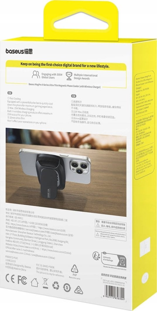 Ультратонкий тримач Baseus Baseus MagPro II Ultra-Thin із зарядним пристроєм і охолодженням – Інноваційне рішення для вашого смартфона Відкрийте для себе новий рівень комфорту з ультратонким тримачем Baseus MagPro II, який поєднує в собі функції охолодження та бездротової зарядки.Завдяки сучасним технологіям цей продукт є ідеальним рішенням для кожного власника смартфона, який цінує зручність та ефективність.Розширене охолодження та бездротова зарядка в одному Baseus MagPro II — це не лише тримач, але й вдосконалений пристрій, який ефективно охолоджує ваш телефон під час заряджання.Поєднавши ці дві функції, ви можете насолоджуватися більшим часом роботи свого пристрою, не турбуючись про перегрів.Вбудований вентилятор з 9 лопатями для оптимальної температури Тримач оснащений вентилятором з 9 лопатями, який забезпечує ефективне охолодження, підтримуючи оптимальну температуру на рівні 20°C.Це ідеальне рішення для інтенсивних користувачів, які використовують свій телефон для ігор або перегляду фільмів.Швидка зарядка до 15 Вт – Ефективність без кабелів Baseus MagPro II пропонує вихідну потужність до 15 Вт, що дозволяє швидко заряджати без необхідності використовувати кабелі.Завдяки цьому ви можете повною мірою використовувати можливості свого смартфона, не турбуючись про час зарядки.Стильне RGB підсвічування – Оригінальний зовнішній вигляд і функціональність Ручка має ефективне RGB підсвічування, яке легко вмикається і вимикається.Завдяки цьому ви отримуєте не тільки функціональність, а й стильний акцент, який виділятиме ваш комплект.Функція підставки – Зручне розташування телефону на столі Baseus MagPro II також можна використовувати як підставку, що підвищує комфорт використання під час перегляду фільмів або проведення відеоконференцій.Це універсальний продукт, який адаптується до ваших потреб.Безпека використання – Сильний магніт і безпека Тримач оснащений сильним магнітом із силою 14Н, що забезпечує стабільне утримання телефону.Крім того, пристрій захищено від перенапруги, короткого замикання та інших загроз, що гарантує безпечне використання.Технічні характеристики Baseus MagPro II Ultra-Thin – Основні параметри продукту Виробник: Baseus Назва: MagPro II Series Ultra-Thin Magnetic Phone Cooler Модель: B10572900121-00 Колір: чорний Вхід: 5 В – 2 А, 9 В – 3 А, 12 В – 3 А, 15 В – 3 А макс. Потужність: 5 Вт / 7,5 Вт / 10 Вт / 15 Вт Загальна вихідна потужність: 15 Вт Вага продукту з упаковкою: 0,196 кг Сильний магніт: 14N Рівень шуму: 15 дБ Захист: від перенапруги, короткого замикання та інших загроз Сумісність: iPhone 12-15 серії та інші смартфони з металевим кільцем Комплектація: тримач, кабель USB-C до USB-C, металеве кільце Замовити зараз щоб отримати найкращу продуктивність і комфорт використання!Це ідеальний вибір для тих, хто хоче поєднати функціональність із сучасним дизайном.Продукт доступний сьогодні в Morele!