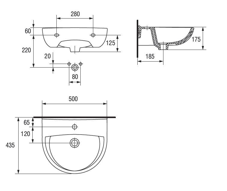 Умивальник PRESIDENT 50см без отвору K08-003 Ціна вказана тільки за умивальник Артикул виробника: K08-003 Колір: білий Вага: 11кг Ширина: 500мм Глибина: 435мм Умивальник без отвору під фурнітуру Можливість установки з напівп’єдесталом і тумбою з серії PRESIDENT або Шафи BIANCO.