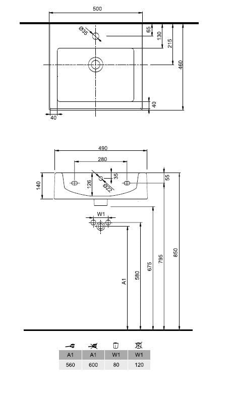 Умивальник KOŁO Twins 50см (L51150) Умивальник з прямокутною чашею всередині умивальника Кріпиться шурупами Доповнюється тумбою 89483, 89484, 89485, 89489, 89490, 89491, 89495, 89496, 89497 Можна встановити на стільницю, зберігаючи інсталяційні стінки