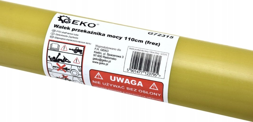 Карданний вал Geko 110 см – Надійний привід для сільськогосподарських машин Карданний вал Geko довжиною 110 см є ключовим елементом, який ефективно передає механічну енергію від двигуна трактора до різних сільськогосподарських машин.Завдяки міцній конструкції цей коток забезпечує надійність і тривалу роботу навіть у важких умовах, що робить його ідеальним вибором для кожного фермера.Висока якість і довговічність виготовлення Ролик Geko відрізняється відмінною якістю виготовлення, що виражається в його довговічності та стійкості до пошкоджень.Надійні матеріали та точне виготовлення дозволяють цьому продукту легко відповідати вимогам інтенсивного використання в сільському господарстві.Універсальне використання в різних машинах Цей карданний вал надзвичайно універсальний і може використовуватися в багатьох різних сільськогосподарських машинах.Оскільки він підходить для пристроїв потужністю від 30 до 47 к. с., він є ідеальним рішенням для широкого спектру сільськогосподарських застосувань.Безпека та простота встановлення Ролик Geko був розроблений з урахуванням безпеки користувача.Захист від перевантаження мінімізує ризик поломок і аварій.Крім того, його монтаж простий і швидкий, що дозволяє безпроблемно підключити його до трактора.Застосування в косарках, мотоблоках і обприскувачах. Вал трансмісії Geko використовується в багатьох машинах, таких як: косарки для косіння трави та інших рослин.Ґрунтокультиватори для розпушування та перемішування ґрунту.Розкидачі добрив для внесення мінеральних і органічних добрив.Обприскувачі для обприскування сільськогосподарських культур і садів.Технічні характеристики валу відбору потужності Geko Тип: фрезерний Довжина нерозширеного вала: 1100 мм Довжина висунутого вала (з ланцюгом): 1220 мм Максимальний крутний момент: 600 Нм Карданні шарніри: 27 x 74,5 мм Для машин потужністю: 30 – 47 HP Каталожний номер: 72315 Виробник: Geko Вага продукту в одиничній упаковці: 11 000 кг EAN (GTIN): 5901477123795 Замовляйте зараз, щоб насолоджуватися найкращою продуктивністю на своїй фермі!Ідеальний вибір для ваших потреб – доступний сьогодні в Абрикос!