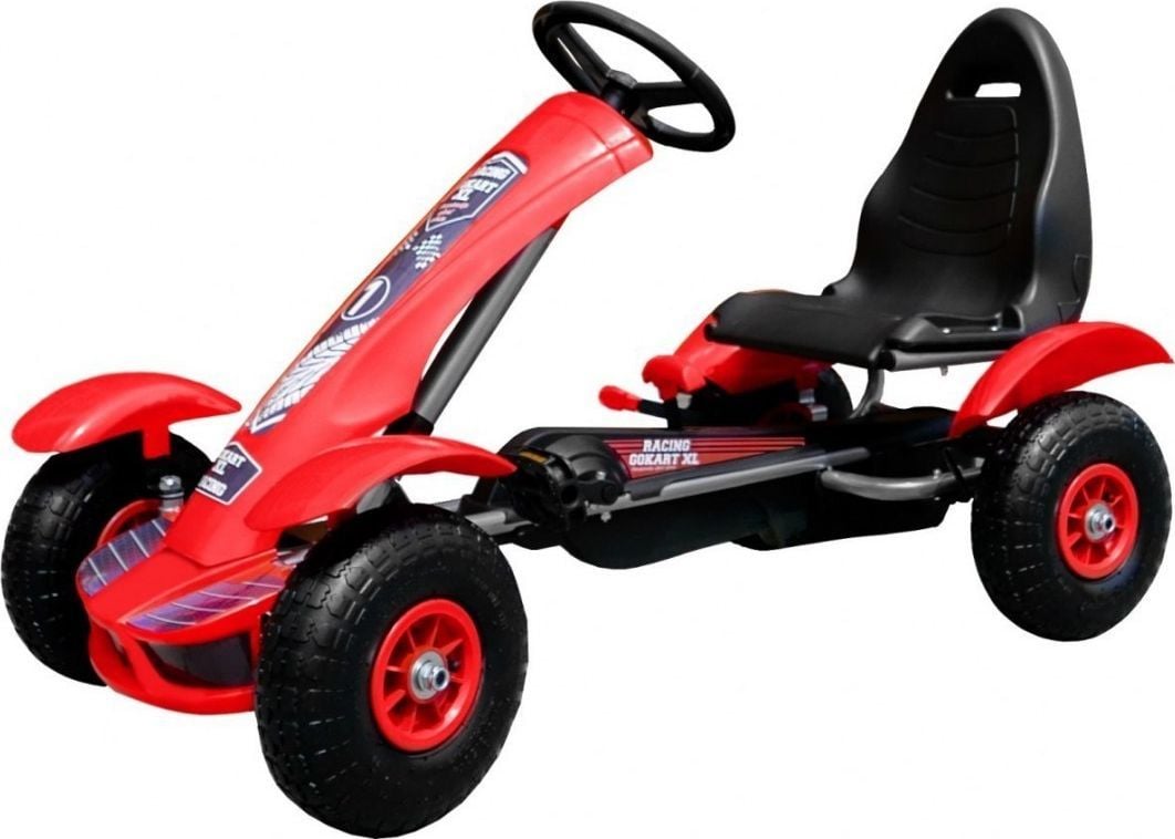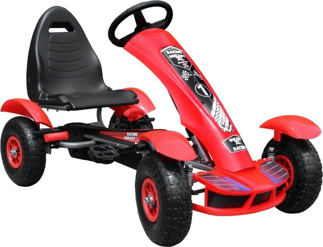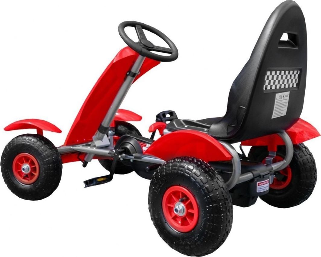 Специфікація Large Gokart Inflatable Wheels Drive ланцюговий привід (повний корпус), металеві шестерні, ручне гальмо, передача, що дозволяє рухатися вперед/назад і вільний перехід, колеса надувні колеса, всі колеса з шарикопідшипниками, ø 27 см Сидіння Профільоване спортивне сидіння з триступеневим регулюванням, 27 см x 21 см, Розміри Розмір автомобіля Довжина 106 см, Ширина 61 см, Висота 85 см, Вага автомобіля 13 кг, Розмір ящика 88 x 62 x 36 см, Вага в ящику 16 кг, Максимальне навантаження 50 кг Дорожній просвіт 9 см, Додаткове обладнання Інструкції Монтажний комплект