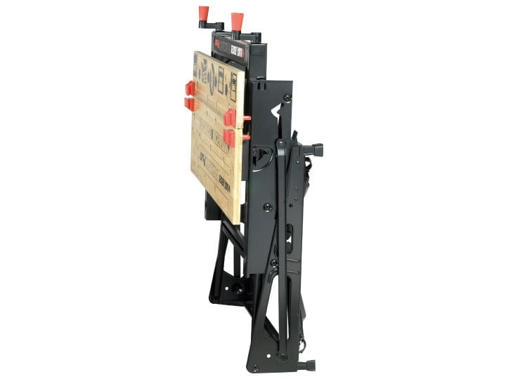 Верстак WORKMATE 62-80см 740×562мм – WM825 Характеристики: Система затискання однією рукою дозволяє окремо або одночасно встановлювати обидва затискачі Вертикально затиснута передня губка дозволяє затискати об’єкти неправильної форми 2 робочі висоти дозволяють використовувати як верстак, стіл для інструментів, лещата та пилку Сталева конструкція з навантаженням 250 кг Складна рама для транспортування та зберігання. Два затискних гвинти, що приводяться в рух кривошипами – висока сила затиску та універсальність використання. Регульовані обертові штифти та пази для утримання губок забезпечують універсальність затискання та надійного утримання матеріалів. Конструкція, яка легко налаштовувати та чистити. Гумові чохли для ніжок запобігають ковзанню столу по землі. Щелепи регулюються в 3 положеннях. Технічні дані: Робоча висота: 800/620 мм Розміри після складання (ширина х висота х глибина): 830 х 740 х 200 мм Максимальне відкриття губок: 0-205 мм Довжина губок: 740 мм Макс. ширина столу – відкриті губки: 541 мм Положення губок столу: 3 Макс. навантаження: 250 кг Вертикальна губка: Так Матеріал столової губки: ДСП Керування однією рукою: Так