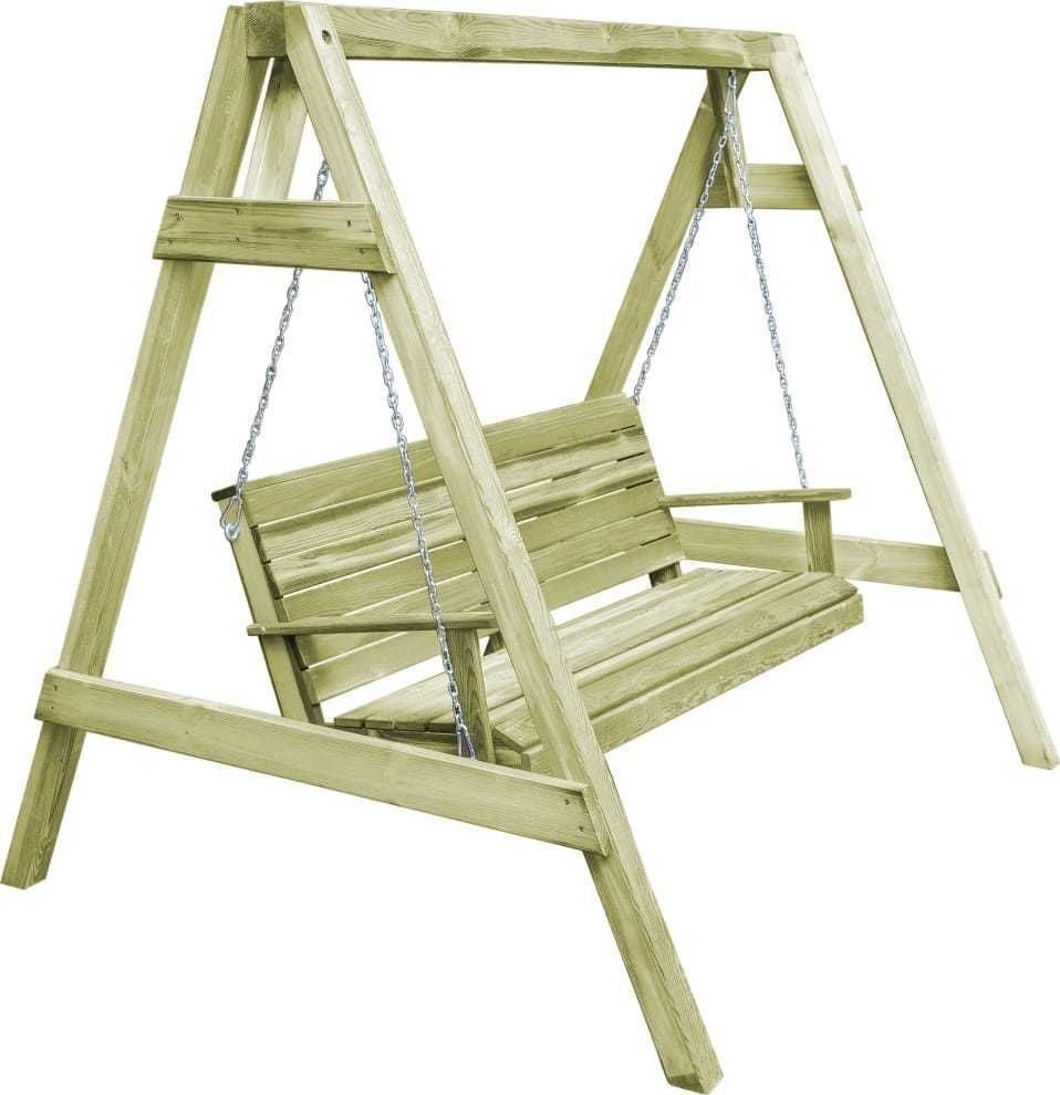 Ці дерев’яні гойдалки стануть центром вашого саду чи іншого відкритого простору.Він ідеально підходить для відпочинку або спілкування в саду або на внутрішньому дворику.Виріб виготовлено з високоякісної, просоченої FSC-сертифікованої деревини сосни, яка є довговічною, стійкою до погодних умов і гниття.Вам сподобається гойдання і легкий вітерець на цій гойдалці.Його збірка проста.Зверніть увагу, що дерево є натуральним матеріалом і може мати деякі недоліки.Колір: натуральний Матеріал: просочена соснова деревина (сертифікована FSC) Розміри: 215 x 171 x 180 см (Ш x Г x В) Ширина сидіння: 150 см Глибина сидіння: 55 см Продукт підходить для використання на вулиці