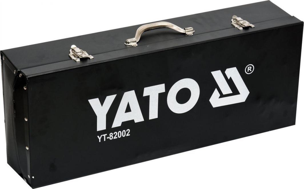 Відбійний молоток YATO YT-82002 70J Найпотужніший відбійний молоток (70J) з масляним охолодженням (5W30) у своєму класі.Призначений для руйнування залізобетону, напр. опори, плити, армовані сталлю A-III і A-0, відколювання стелі або ущільнення ґрунту відповідним наконечником.Він проходить випробування при горизонтальному куванні завдяки короткому ходу поршня і високій частоті ударів (не викликає ефекту відштовхування оператора та молота від стіни, коли його тримають горизонтально, замість кування, характерного для багатьох конструкцій молотів на ринку).Ефективне масляне охолодження захищає машину від перегріву під час важкої роботи та, завдяки меншій в’язкості, ніж мастило, спричиняє менший опір тертю в механізмі, значно подовжуючи термін служби пристрою.Антивібраційна рукоятка захищає оператора молотка від негативного впливу вібрації та зменшує втому, спричинену триманням працюючого молотка.Великий діаметр поршня електропневматичного механізму гарантує високу енергію одноразового удару (до 70 Дж), що дозволяє ефективно відколювати значний об’єм бетону за одиницю робочого часу. Технічні дані Потужність [Вт]: 1600 Удар: електропневматичний Застосування: Бетон, залізобетон, цегла Рукоятка: шестигранник Енергія удару [Дж]: 70 Напруга [В]: 220-240 Кількість ударів [1/хв]: 1900 Кількість обертів [1/хв]: 0 Функції роботи: кування