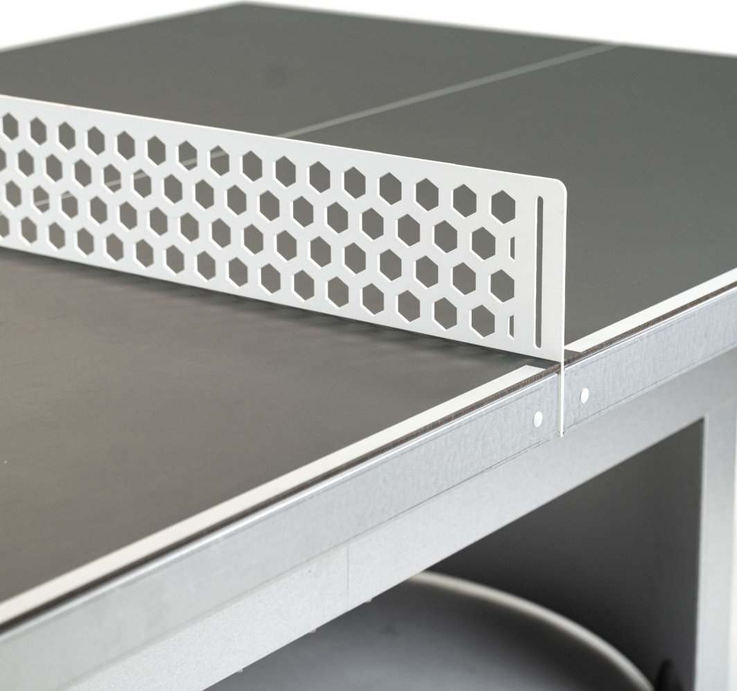 Campus 510m відкритий тенісний стіл Cornilleau – ідеальний вибір для шкіл і спортивних центрів. Відкритий тенісний стіл Campus 510m від бренду Cornilleau – відмінне рішення для шкіл, спортивних центрів і місць відпочинку.Його сучасний вигляд і довговічність роблять його ідеальним вибором для любителів настільного тенісу, які шукають якість і функціональність.Міцна конструкція та стійкість до погодних умов. Стіл відрізняється міцною конструкцією, яка витримує навантаження до 800 кг, що забезпечує безпеку використання.Завдяки використанню матеріалів, стійких до несприятливих погодних умов, він ідеально підходить для зовнішнього використання, незалежно від переважаючих умов.Високоякісна поверхня з ламінату HPL. Стільниця виготовлена ​​з ламінату HPL товщиною 7 мм, що забезпечує чудовий відскок м’яча та стійкість до дощу та УФ-випромінювання.Матове покриття усуває відблиски, що підвищує комфорт гри в сонячні дні.Функціональність і зручність використання Тенісний стіл Campus 510m outdoor оснащений практичними тримачами для м’ячів і ракеток, що полегшує їх зберігання.Легко підтримувати в чистоті означає, що будь-які забруднення можна швидко видалити водою, що важливо в приміщеннях з інтенсивним використанням.Безпека та стабільність під час інтенсивного використання. Міцна сталева рама забезпечує виняткову стабільність під час гри, а постійне кріплення до землі гарантує безпеку, особливо в громадських місцях.Для підвищення безпеки кути столу заокруглені, що мінімізує ризик отримання травм.Ергономічний дизайн і сучасні технології. Тенісний стіл Campus 510m поєднує естетику з практичністю.Вигнуті ніжки з наземною системою кріплення та сучасні матеріали роблять його не тільки функціональним, але й візуально привабливим.Це ідеальний вибір для тих, хто хоче отримати задоволення від гри в настільний теніс на найвищому рівні.Технічні характеристики відкритого тенісного столу Campus 510m Cornilleau Тип стільниці: 7 мм HPL ламінат Каркас стільниці: виготовлений з алюцинку, товщина 60 мм Загальна товщина: 67 мм Колір стільниці: сірий Покриття поверхні столу: MATTOP® Ніжки столу: вигнуті з системою кріплення до землі Сітка: сталь, покрита антикорозійним покриттям Розміри столу: 274 x 152,5 х 76 см Вага столу: 87 кг, в упаковці 99 кг Клас: B – спортивні та шкільні столи Країна виробник: Франція Цільове використання: школи, спортивні центри, громадські установи та місця відпочинку Доступність запчастин: 20 років з дати покупки Замовляйте зараз, щоб насолоджуватися найкращою якістю та ефективністю!Ідеально підходить для ваших потреб – доступний сьогодні в Apricot!