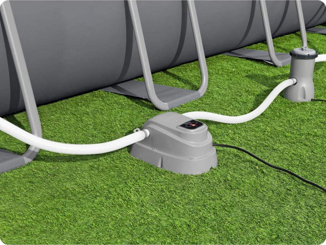 Водонагрівач для садового басейну Bestway 58259 Нехай сезон басейну триватиме ще довше!Якщо температура води в садовому басейні не заохочує вас використовувати його, варто інвестувати в водонагрівач.Цей простий в установці пристрій має максимальну потужність нагріву 40°C.Нагрівач рекомендований для басейнів об’ємом 1520-17035 л. Для роботи обігрівача потрібен фільтруючий насос.Технічні дані: Призначено для басейнів: 1520-17035 л Потужність нагріву: до 40°C Фільтруючий насос: до 3785 л/год Діаметр шланга: 3,2 см Сертифікат: CE/TUV Датчик витрати води: так Вага: 5,8 кг