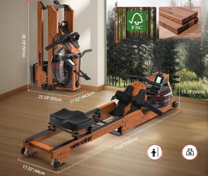 Дерев’яний водногребний тренажер Wenoker – ідеально підходить для домашніх тренувань. Водний гребний тренажер Wenoker – чудове рішення для тих, хто хоче ефективно займатися спортом, не виходячи з дому.Завдяки унікальному дизайну та високоякісним матеріалам цей пристрій не тільки гарантує ефективність, але й перетворює кожне тренування в задоволення.Високоякісна деревина дуба, сертифікована FSC. Гребний тренажер виготовлений із твердої деревини дуба, сертифікованого FSC.Це означає, що деревина походить із екологічно чистих лісів, що робить її екологічно чистим вибором.Міцна конструкція забезпечує довговічність і стабільність навіть під час інтенсивних тренувань.Реалістичний досвід веслування завдяки природному шуму води Пристрій ідеально імітує веслування на воді, залучаючи все тіло та створюючи реалістичні відчуття завдяки природному звуку текучої води.Завдяки регульованій силі опору гребний тренажер задіює до 90% м’язів, що робить його ідеальним як для початківців, так і для більш досвідчених користувачів.Компактна складна конструкція Водногребний тренажер Wenoker складається, що значно полегшує його зберігання та транспортування.Завдяки можливості складатися до 180° пристрій займає мінімум місця, що особливо важливо в невеликих приміщеннях.Контроль тренувань за допомогою програми Kinomap Гребний тренажер оснащений монітором Bluetooth, який підключається до програми Kinomap.Це дозволяє бездротовим способом передавати дані про тренування на ваш смартфон або планшет, дозволяючи вам відстежувати свій прогрес і пристосовувати тренування до ваших індивідуальних потреб.Ергономічні ручки та сидіння для максимального комфорту Ергономічні ручки та сидіння забезпечують комфорт під час тренувань, що дозволяє виконувати довготривалі вправи без дискомфорту.Крім того, амортизаційні поліуретанові колеса зменшують шум, що робить тренування ще приємнішим.Швидка збірка всього за 15 хвилин. Гребний тренажер поставляється в зібраному вигляді на 85%, що дозволяє швидко налаштувати пристрій всього за 15 хвилин.Завдяки цьому ви можете почати тренування негайно без зайвих зволікань.Максимальне навантаження до 150 кг і вага маховика 6 кг Водногребний тренажер Wenoker розроблений для користувачів з різними параметрами.Максимальне навантаження 150 кг, а вага маховика 6 кг, що забезпечує стабільність і ефективність під час тренувань.Технічні характеристики водного весляра Wenoker 2025 Матеріал – масив дуба Сертифікат – FSC Максимальне навантаження – 150 кг Вага маховика – 6 кг Система складання – так, 180° Монітор – Додаток Bluetooth – Дисплей Kinomap – LCD Ергономічні ручки – так Амортизуючі колеса – ПУ Час складання – 15 хвилин Задіяна мускулатура – 90% Замовляйте зараз, щоб отримати найкращу продуктивність і комфорт тренувань!Це ідеальний вибір для ваших потреб – доступний сьогодні в Apricot!