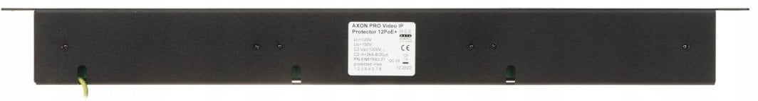 Пристрій безпеки AXON PRO Video IP Protector 12 PoE+ – Ефективний захист від стрибків напруги AXON PRO Video IP Protector 12 PoE+ — це сучасний пристрій безпеки, який ефективно захищає обладнання, підключене до мережі Ethernet, від небезпечних стрибків напруги.Завдяки передовій багатоканальній системі захисту ця модель є ідеальним рішенням для сучасних систем моніторингу та автоматизації будівництва.Технологія PoE+ – Живлення пристроїв із підвищеним енергоспоживанням Пристрій підтримує технологію PoE+, яка дозволяє живити обладнання з більшим енергоспоживанням, наприклад камери Speed ​​​​Dome HD.Завдяки цьому він забезпечує стабільну та ефективну роботу навіть у складних умовах, що робить його ідеальним вибором для професійних установок.Металевий корпус – Міцність і екранування для тривалого захисту AXON PRO Video IP Protector 12 PoE+ характеризується міцним металевим корпусом, який не тільки захищає від механічних пошкоджень, але й ефективно екранує всю систему захисту.Така конструкція забезпечує тривале використання та безпеку підключених пристроїв.Використовуйте в 19″ шафах RACK – модуль 1U для ефективного встановлення. Пристрій розроблено для встановлення в стандартних шафах 19″ RACK як модуль 1U, що полегшує установку та економить місце.Завдяки своїм компактним розмірам AXON PRO Video Protector 12 PoE+ ідеально впишеться в будь-яку сучасну інфраструктуру.Захист усіх пар проводів – Безпека в мережі Ethernet AXON PRO Video IP Protector 12 PoE+ забезпечує захист усіх пар проводів, що значно підвищує безпеку мережі Ethernet.Завдяки використанню екранованого роз’єму RJ-45 пристрій підтримує цілісність екрана, що є вирішальним для стабільності сигналу та захисту від перешкод.Технічні характеристики AXON PRO Video Protector 12 PoE+ Модель: AXON-PRO-IP-12POE+ Бренд: Axon EAN (GTIN): 5904743335908 Код виробника: 5904743335908 Вага продукту в упаковці: 1,180 кг Кількість каналів: 12 Швидкість передачі: 10 / 100 / 1000 Мбіт/с Номінальна напруга: 120 В Максимальна напруга: 150 В Номінальний струм живлення: 600 мА Напруга захисту лінії-землі: ≤ 1000 В – 1,2/50 мкс [C2] Номінальний струм розряду (лінія-земля): 2 кА – 8/20 мкс [C2] Тип роз’єму: 24 x Екранована розетка RJ-45 (8P8C) (12 входів, 12 виходів) Захищені пари проводів: 1-2, 3-6, 4-5, 7-8 Корпус: металевий, чорний Розміри: 490 x 50 x 44 мм, RACK 19″, 1U Довжина дроту заземлення: 50 см. Замовте зараз, щоб отримати найкращий захист від стрибків напруги! Це ідеально рішення для ваших потреб – доступне сьогодні в Morele!