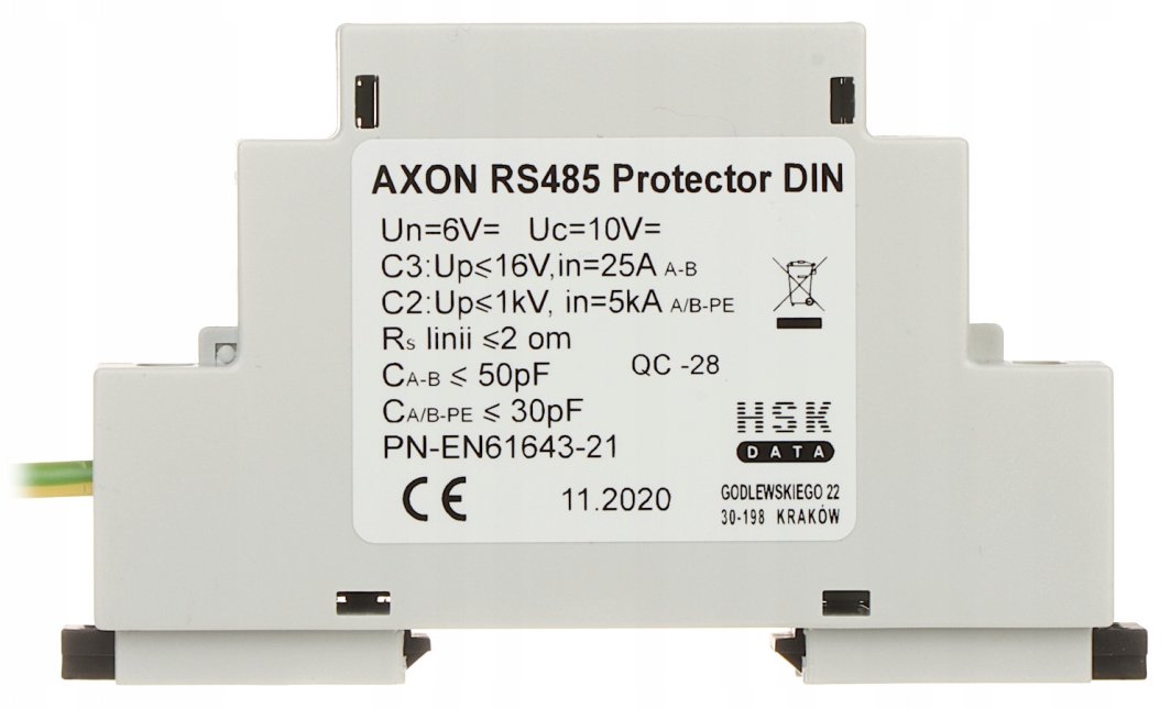 Обмежувач перенапруг AXON RS485 Protector DIN W0049 – надійний захист електронних пристроїв. Обмежувач перенапруг AXON RS485 Protector DIN W0049 – це сучасний пристрій, який забезпечує надійний захист електронних систем управління.Завдяки використанню передової технології він ефективно захищає від небезпечних перенапруг, що робить його ідеальним рішенням для професійних установок, де безпека та надійність є ключовими.Використання в системах управління промисловими камерами AXON RS485/DIN був створений для систем, які використовують передачу RS-485, що дозволяє ефективно захистити лінії електропередач.Завдяки цьому значно знижується ризик пошкодження через перенапругу, що особливо важливо в контексті промислових камер.Захисні елементи та їх функції Виріб оснащено передовими захисними елементами, які ефективно обмежують перенапруги між лінією електропередачі та захисним провідником PE.Завдяки цьому тривожні заряди розряджаються на землю, що підвищує безпеку як підключених пристроїв, так і їх користувачів.Монтаж на DIN-рейку 35 мм – Легко встановити Обмежувач AXON RS485/DIN розроблений для встановлення на стандартну 35-мм DIN-рейку, що значно полегшує його встановлення в різних системах.Він має клеми A і B для підключення захищених ліній, а додатковий термінал можна використовувати як заземлення сигналу, що підвищує його універсальність.Продуктивність і технічні параметри AXON RS485/DIN відрізняється високою ефективністю і солідними технічними параметрами.При номінальному струмі розряду 25 А і напрузі захисту до 1000 В пристрій ефективно захищає від перенапруг.Крім того, низький рівень імпедансу та широка частотна характеристика роблять його надійним продуктом.Технічні характеристики обмежувача перенапруги AXON RS485 Бренд: Axon Тип: розрядник перенапруги Вага виробу з індивідуальною упаковкою: 0,064 кг Код виробника: AXON-RS485/DIN Номінальний струм: 0,75 A Рівень захисту IP: IP20 Номінальна напруга: 6 В Максимальна напруга: 10 В Номінальний струм розряду (лінія-лінія) [C3]: 25 A – 10/1000 мкс Номінальний струм розряду (лінія-земля) [C2]: 5 кА – 8/20 мкс Підвищення захисної напруги лінія-лінія для номінального струму [C3]: ≤ 16 В – 1 кВ/мкс Захисна напруга лінія-земля [C2]: ≤ 1000 В – 1,2 кВ / 50 мкс Імпеданс лінії: ≤ 2 Ω Смуга пропускання: 0 МГц … 1 МГц Ємність лінії: 50 пФ Ємність лінія-земля: 16 пФ З’єднувачі: 2 потрійних гвинтових затискача, 2,5 мм² Параметри захисту: відповідає PN-EN61643-21 Корпус: монтаж на DIN-рейку, TS-35 Розміри: 90 x 58 x 22,5 мм (ширина 1,5) Замовляйте зараз, щоб отримати найкращий захист для своїх електронних пристроїв!Це ідеальний вибір для ваших потреб – доступний сьогодні в Apricot!