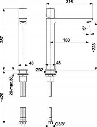 Основні характеристики: – колір: хром – тип: умивальник – тип: одноважільний – монтаж: стоячий – тип виливу: стаціонарний – монетний аератор Технічні характеристики: – діапазон виливу: 180 мм – керамічний регулятор 25 мм – потік води: 12 л/хв.