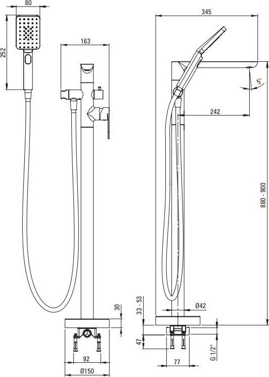 Польський бренд 33+ років Екологічне пакування Потрійний контроль якості Колекція Alpinia Окремо стоячий змішувач для ванни з душовою гарнітурою Переваги продукту Легкий і тонкий дизайн Змішувач оснащений зворотними клапанами, завдяки яким змішана вода не тече назад в установку Монетний аератор Механічний керамічний функціональний перемикач Система проти скручування запобігає скрученню шланга Інноваційний, міцний і простий у чищенні Покриття Nero Лише найкращі матеріали високої якості, підтверджені випробуваннями в лабораторії. Важіль, розміщений збоку, полегшує підтримку виливу в чистоті. Корпус змішувача виготовлено з латуні найвищої якості. Слухавка з функцією захисту від накипу. 3-функціональна трубка. Пропозиція включає підготовку для очищення арматури всіх кольорів. Легкий і вишуканий дизайн. Змішувач, оснащений зворотними клапанами, завдяки яким змішана вода не повертається в установку. Монетний аератор. Механічний керамічний перемикач функцій Опис продукту Окремо стоячий змішувач для ванни з душовою гарнітурою з широкого асортименту продукції Лінія Alpinia ідеально підходить для модерністської ванної кімнати з окремо стоячою ванною.Його висота та метод встановлення на підлозі надають приміщенню естетичного та тонкого характеру.Завдяки матовому покриттю Nero і гладкій поверхні, змішувач буде радувати користувача своїм зовнішнім виглядом не один рік.Крім того, представлений змішувач для ванни оснащений механічним керамічним перемикачем душу.Легкий і витончений дизайн У серії Alpinia увагу привертають форми з м’якими лініями і округлим корпусом.Округла форма означає, що вода вільно стікає з ідеально гладкої поверхні, а вироби легше чистити.Їх проста, економічна форма сподобається шанувальникам сучасного інтер’єру, які цінують функціональність і вишуканість деталей.Завдяки невеликим розмірам Alpinia є ідеальним рішенням для невеликих приміщень.Змішувач оснащений зворотними клапанами, завдяки яким змішана вода не тече назад в установку. Зворотні клапани гарантують справну роботу арматури, а в термостатичних змішувачах вони також запобігають змішуванню води в установці.Монетний аератор Монетний аератор можна відкрутити навіть за допомогою монети.Це дуже корисно, коли ми хочемо його очистити або замінити на новий.Механічний керамічний функціональний перемикач Стриманий і водночас дуже ергономічний функціональний перемикач, який дозволяє змінювати потік води навіть за низького тиску.Система проти скручування, що запобігає скручування шланга. Anti-twist – це система, яка запобігає перекручування наконечника шланга під час використання, що істотно впливає на комфорт купання.Забудьте про необхідність щоразу розплутувати його та витрачати час.Крім того, система Anti-twist підвищує довговічність і надійність виробу.Інноваційне, довговічне покриття Nero, яке легко миється. Чорна матова поверхня фурнітури Deante NERO є результатом використання інноваційних технологій.Його особливі властивості означають, що на продукті не залишаються відбитки пальців.Структура поверхні міцна і її легко підтримувати в чистоті.Щоб видалити відкладення, просто протріть змішувач м’якою тканиною.Крім того, облаштування інтер’єру за допомогою фурнітури насиченого чорного кольору робить навколишні кольори яскравішими, повнішими і виразн