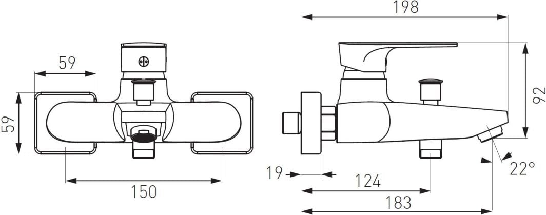 Настінний хромований змішувач для ванни Algeo Square (BAQ1) Опис: керамічний регулятор, автоматичний перемикач ванна/душ з замком, регулятор струменя M24x1, ексцентрикове підключення G1/2, відстань 150 ± 20 мм, без хромованого душового гарнітура